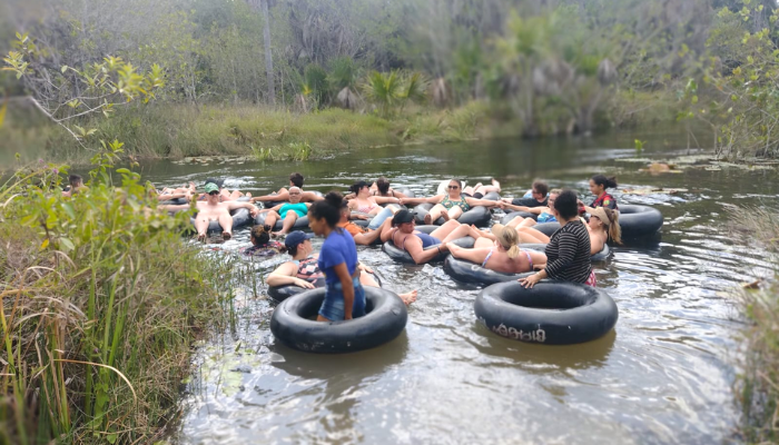 Passeio de boia pelo Rio Formiga, realizado na comunidade de Cardosa, localizada a